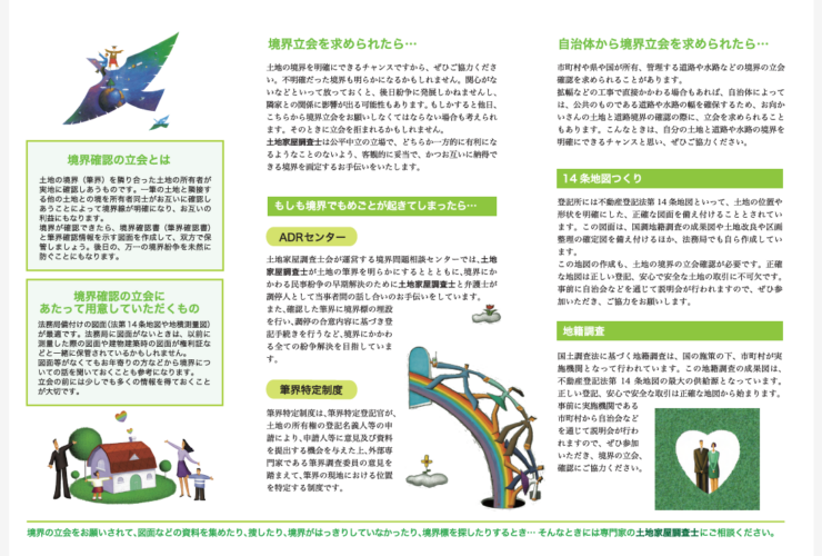 一筆の土地と隣接する他の土地との境を所有者同士がお互いに確認しあうことによって境界線が明確になり、お互いの利益にもなります。
